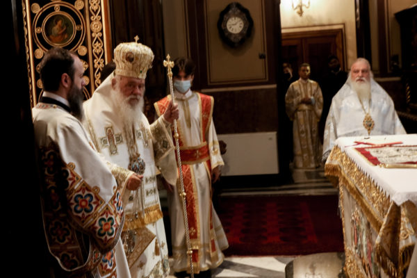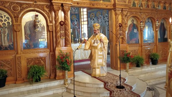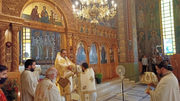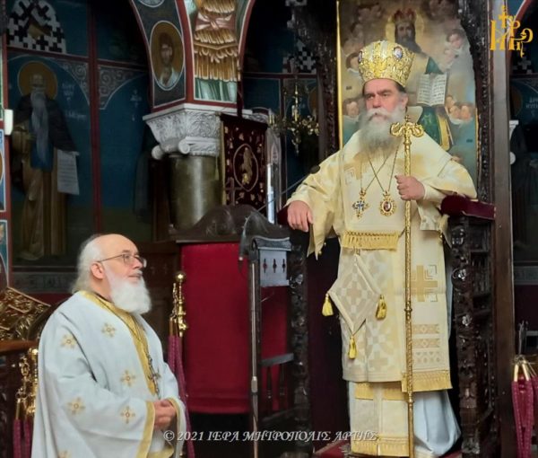 Τον οικείο Ποιμενάρχη πλαισίωσαν ο Προισταμενος του Ιερού Ναού πρωτ. Αντώνιος Φιλίππου και ο ιεροδιάκονος Χαράλαμπος Σκαρλής.