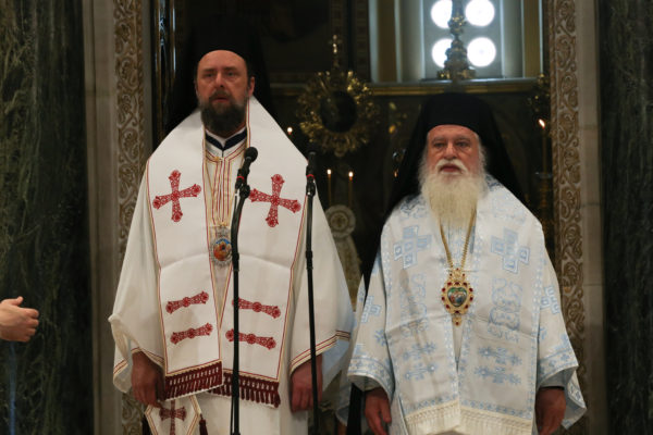 Τον οικείο Ποιμενάρχη πλαισίωσαν ο Προισταμενος του Ιερού Ναού Αρχιμανδρίτης Βαρνάβας Χρυσάνθου και ο Αρχιδιάκονος Ραφαήλ Μισιαούλης.