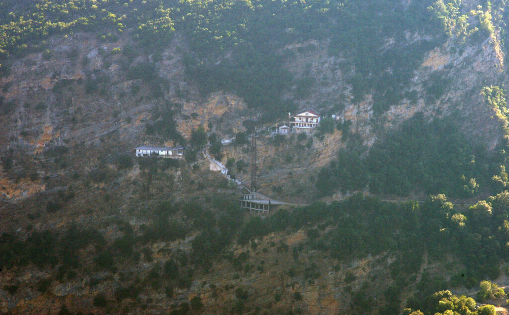 Βρίσκεται κοντά στα χωριά Κοντοβάζαινα και Δήμητρα στην επαρχία Γορτυνίας, στον Νομό Αρκαδίας. Το μοναστήρι είναι χτισμένο στην είσοδο σπηλιάς, η οποία λόγω βάθους και στενής διαμέτρου από ένα σημείο και μετά είναι ανεξερεύνητη. Η τραχιά φυσιογνωμία του τοπίου και το δύσβατο και απροσπέλαστο σχεδόν του εδάφους έχει τροφοδοτήσει πολλούς θρύλους και παραδόσεις σχετικά με την εύρεση της εικόνας της Θεομήτορος και την κτίση του μοναστηριού.