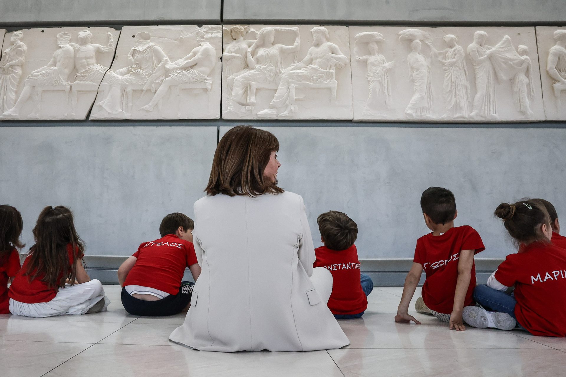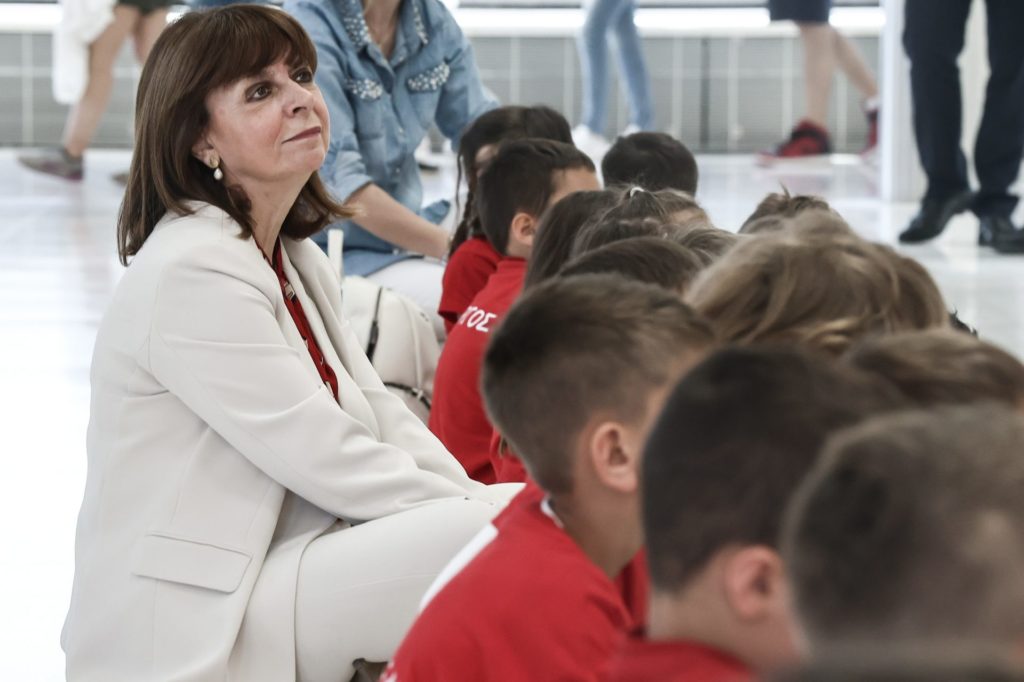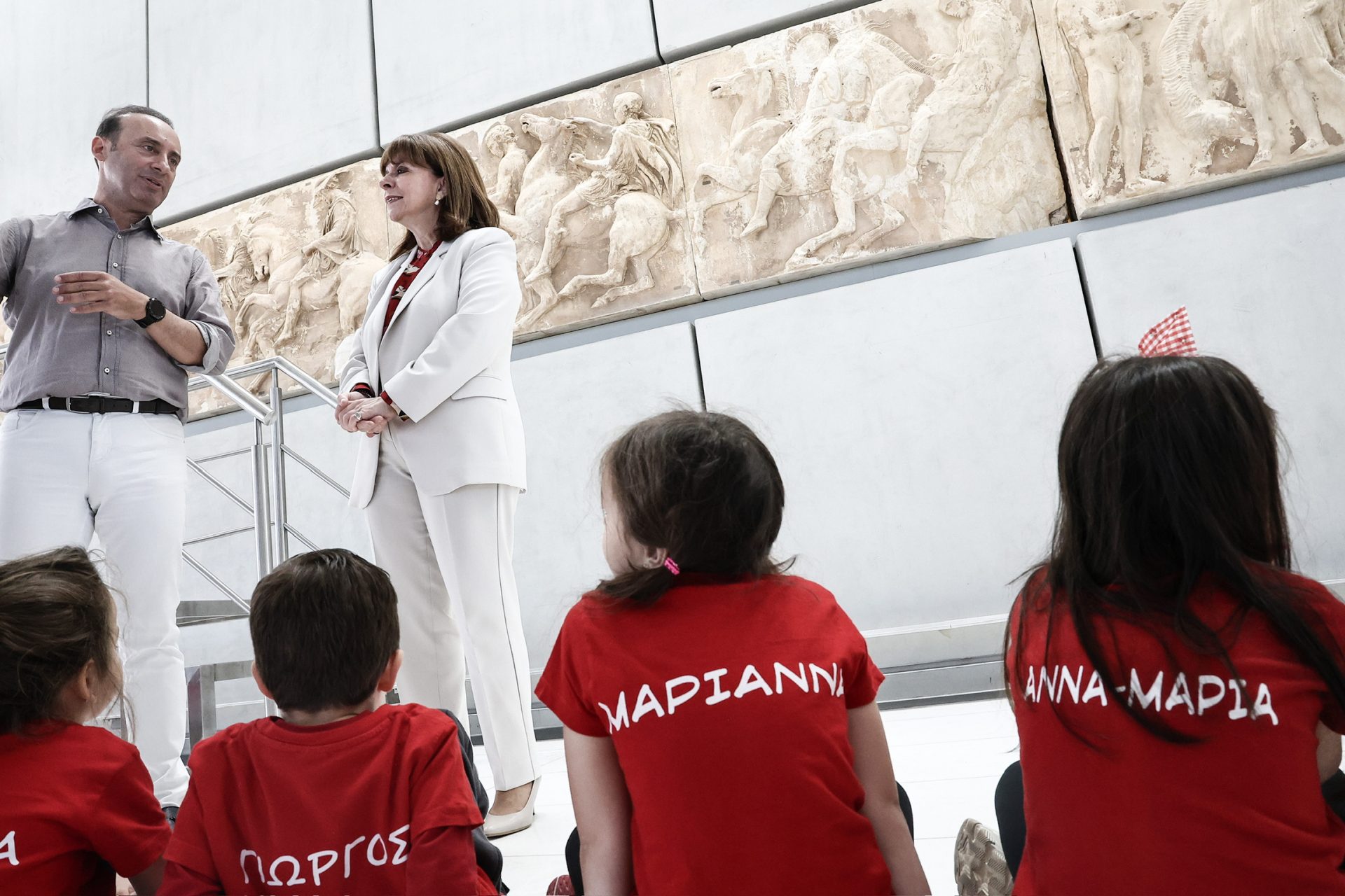 Με αφορμή τη Διεθνή Ημέρα Μουσείων, η Πρόεδρος της Δημοκρατίας Κατερίνα Σακελλαροπούλου, περιηγήθηκε στο Μουσείο της Ακρόπολης με τους μαθητές του 12ου Νηπιαγωγείου Καματερού, οι οποίοι συνοδεύονταν από τον προϊστάμενό του Σπύρο Φίλη.