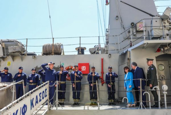 Στη συνέχεια, η Πρόεδρος της Δημοκρατίας επισκέφθηκε την κανονιοφόρο ΚΑΣΟΣ, συνομίλησε με τον κυβερνήτη και το πλήρωμα και της επιδόθηκε ο θυρεός της κανονιοφόρου.