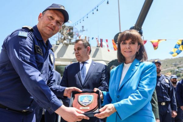 Στη συνέχεια, η Πρόεδρος της Δημοκρατίας επισκέφθηκε την κανονιοφόρο ΚΑΣΟΣ, συνομίλησε με τον κυβερνήτη και το πλήρωμα και της επιδόθηκε ο θυρεός της κανονιοφόρου.