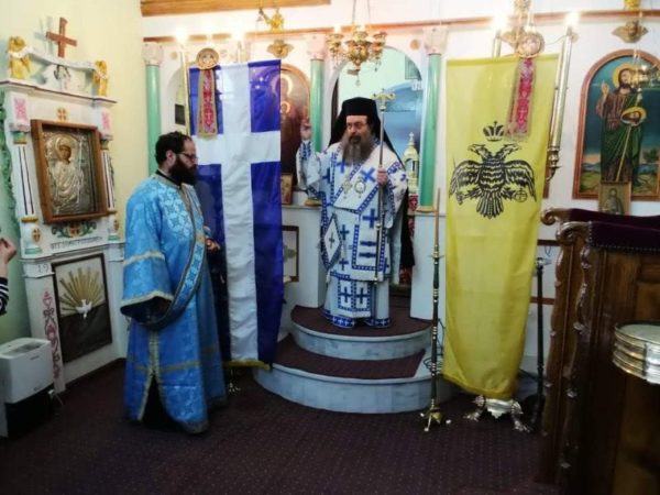 Ο Ιερός Ναός ήταν σημαιοστολισμένος διά Βυζαντινών και Ελληνικών λαβάρων, σημείον της αδιαπτώτου ιστορικής συνεχείας του Ελληνισμού και της συζεύξεώς του με την αληθειαν και την αγάπην της Χριστιανικής Διδασκαλίας.