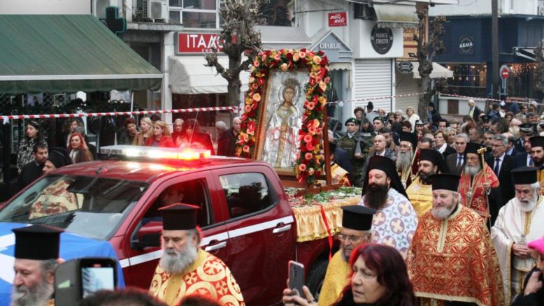 Η λιτανεία ξεκίνησε από το εκκλησάκι της Αγίας Βαρβάρας και κατέληξε στον Ιερό Μητροπολιτικό Ναό όπου σήμερα το πρωί κορυφώθηκαν οι εόρτιες λατρευτικές εκδηλώσεις με την τέλεση Θείας Λειτουργίας.