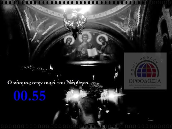 ΩΡΑ 00.55 – Σημειωτόν και σεβαστικά, ευρισκόμαστε στον Νάρθηκα του Ιερού Ναού, ανάμεσα σε δεκάδες άλλους προσκυνητές, μερικά βήματα από την είσοδο μας εις τον κυρίως Ναόν: