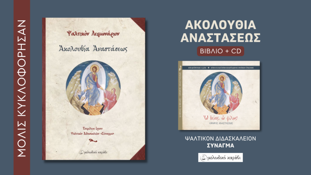 Κυκλοφορεί από τις Εκδόσεις Μελωδικό Καράβι ο τόμος 120 σελίδων με την πλήρη Ακολουθία της Αναστάσεως και Ψηφιακός δίσκος με την ηχογράφηση του Όρθρου της Αναστάσεως.