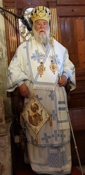 Στη προσφώνηση του ο Σεβασμιώτατος κάλεσε τους πιστούς, καθώς βρισκόμαστε σωματικά στο όρος της Μεταμορφώσεως να αναχθώμεν και πνευματικά «Δεύτε λοιπόν αναβώμεν εις το όρος της Μεταμορφώσεως του Κυρίου». Ομίλησε, περί του Θαβορείου φωτός που είναι το άκτιστον φώς της θεότητος και το οποίον επέτρεψε ο Κύριος μας στους προκρίτους των μαθητών του να λάβουν γεύση αυτού του φωτός και τούτο το υπερθαύμαστο γεγονός της μεταμορφώσεως Του έγινε, λίγο πριν το εκούσιο πάθος του, για να μη ιδούν τον Κύριο επάνω στον Σταυρό πάσχοντα και θνήσκοντα και αποσύρουν την πίστη τους από το πρόσωπο του Κυρίου μας Ιησού Χριστού, αλλά να γνωρίζουν ότι μόνον η ανθρώπινη φύσης πάσχει επί του Σταυρού.