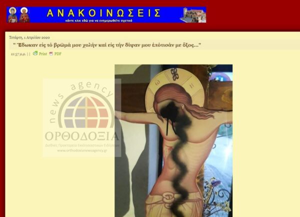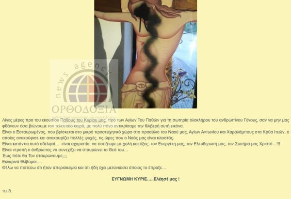 “Λίγες μέρες προ του εκουσίου Πάθους του Κυρίου μας, προ των Αγίων Του Παθών για τη σωτηρία ολοκλήρου του ανθρωπίνου Γένους, σαν να μην μας φθάνουν όσα βιώνουμε τον τελευταίο καιρό, με πολύ πόνο αντικρίσαμε την θλιβερή αυτή εικόνα.