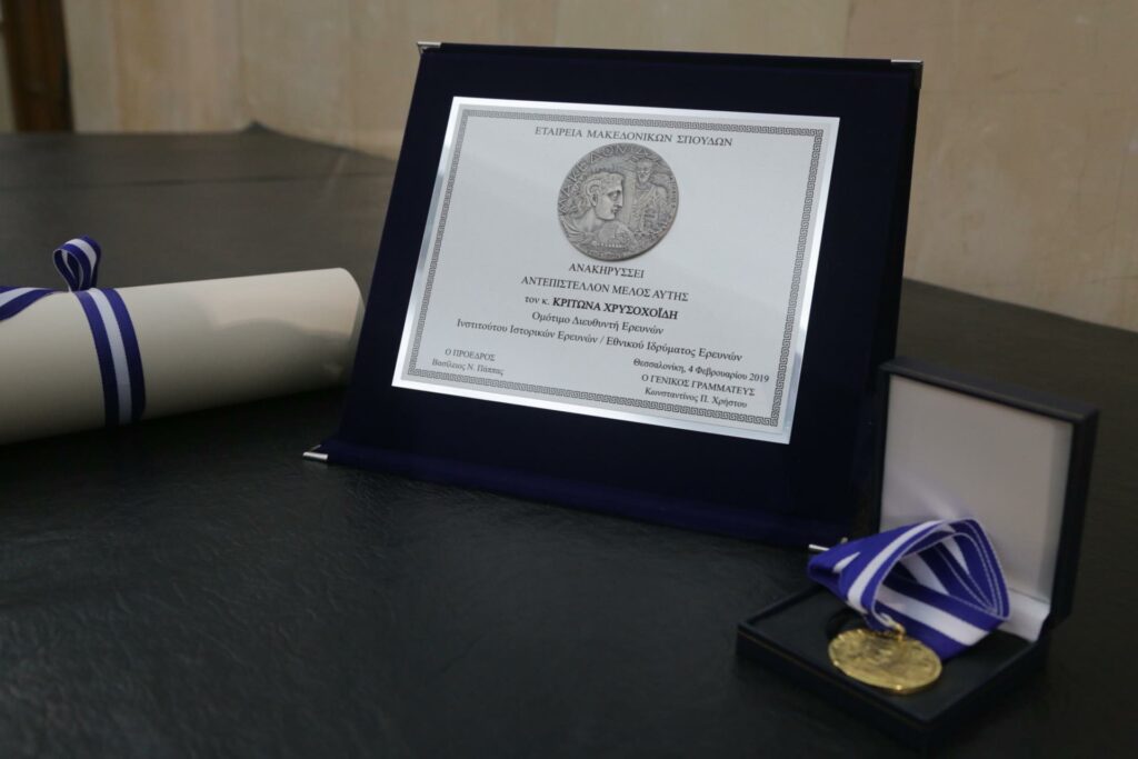 Ο Πρόεδρος και τα μέλη του Διοικητικού Συμβουλίου ανεκήρυξαν τον κ. Χρυσοχοίδη σε αντεπιστέλλον μέλος της Εταιρείας Μακεδονικών Σπουδών για την πολυετή προσφορά του στην μελέτη της αθωνικής ιστορίας και γενικά τη συμβολή του στη μελέτη της ιστορίας της Μακεδονίας.