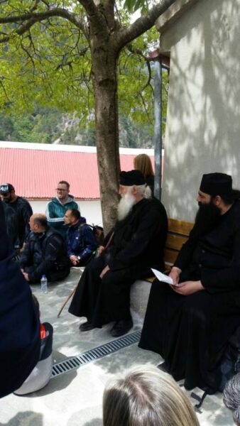 Τέλος, μετέβησαν στην Ιερά Μονή Παναγίας Μολυβδοσκέπαστης όπου ακολούθησε ψυχοφελής ομιλία με τον ιερομόναχο πατέρα Αρσένιο και τον μοναχό Πατέρα Παΐσιο.