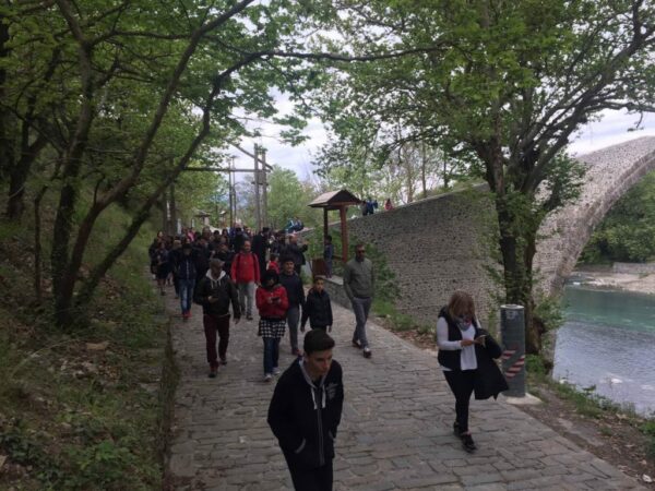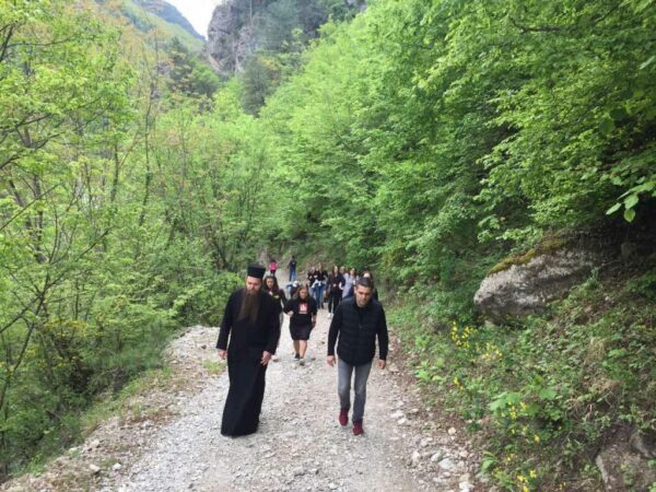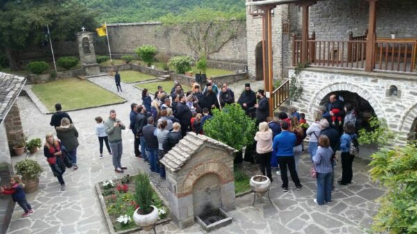 Οι προσκυνητές διένυσαν με τα πόδια μιαν απόσταση περίπου μιάμισης ώρας κατά μήκος του ποταμού Αωού, για να φτάσουν στην Ιερά Μονή Στομίου στην Κόνιτσα. Η συμμετοχή των συνοδοιπόρων -κυριολεκτικα και μεταφορικά- ήταν συγκινητική, το ίδιο και η υποδοχή από τους μοναχούς. Είχαν την ευλογία να ακούσουν τα όλο ευλάβεια λόγια του ηγουμένου πατρός Κοσμά και βίωσαν τη θερμή φιλοξενία της αδελφότητας, όπου εργάζεται με ιδιαίτερο ζήλο και αγώνα ώστε να υπηρετεί εγκάρδια τους επισκέπτες.