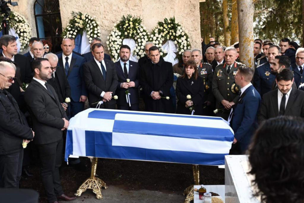 Αφού ολοκληρώθηκε η ταφή, άγημα της Πολεμικής Αεροπορίας έριξε βολές στον αέρα ενώ ακολούθησε η ανάκρουση του Εθνικού Ύμνου.