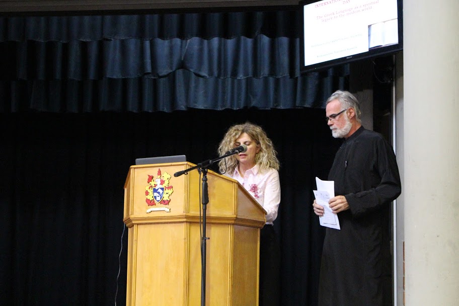 Ο Συντονιστής Εκπαίδευσης, Δρ Γεώργιος Βλάχος, η Δ/ντρια των Ελληνικών Σπουδών της Σχολής Σαχέτι, κα Τόνια Παπάζογλου, η Υποδ/ντρια Ελληνικών Σπουδών Νηπιαγωγείου και Παιδικού σταθμού της Σχολής Σαχέτι, κα Στέλλα Καραγιάννη, o Εμπορικός και Οικονομικός Σύμβουλος της Πρεσβείας, κ. Απόστολος Μιχαλόπουλος, εκπαιδευτικοί της Σχολής Σαχέτι και Κοινοτικών Σχολείων, αλλά και ιστορικοί ερευνητές παρουσίασαν θέματα σχετικά με την αξία, το ρόλο και τη συμβολή της ελληνικής γλώσσας στο σύγχρονο κόσμο: