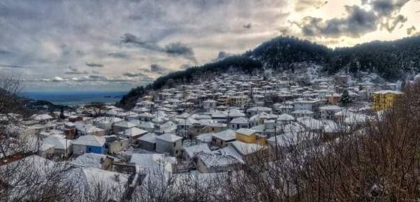 Εντυπωσιακές εικόνες έρχονται από το χιονισμένο χωριό Παναγία της Θάσου καθώς η “Ελπίδα” έπληξε και το νησί του Βορείου Αιγαίου.