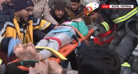 Η ΕΜΑΚ απεγκλώβισε ζωντανή 6χρονη από τα συντρίμμια του σεισμού στην Τουρκία
