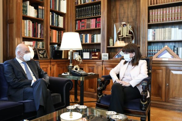 Eπιπλέον ο υπουργός Εξωτερικών συναντήθηκε με την Πρόεδρο της Δημοκρατίας κα. Αικατερίνη Σακελλαροπούλου και την ενημέρωσε για θέματα της αρμοδιότητάς του. Ο κύριος Δένδιας αναφέρθηκε στις πρόσφατες εξελίξεις στις ελληνοτουρκικές σχέσεις, καθώς και στην τριμερή Σύνοδο των Υπουργών Εξωτερικών Ελλάδας, Κύπρου και Λιβάνου. Συζήτησαν, επίσης, για την κατάσταση στα Δυτικά Βαλκάνια, αλλά και για την επικείμενη πενταμερή Διάσκεψη της Γενεύης για το Κυπριακό.