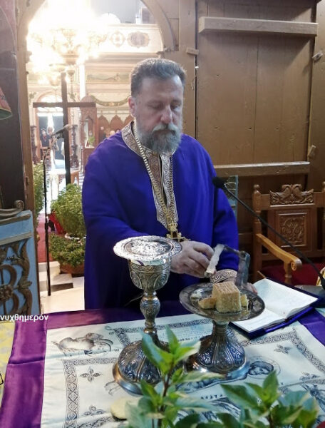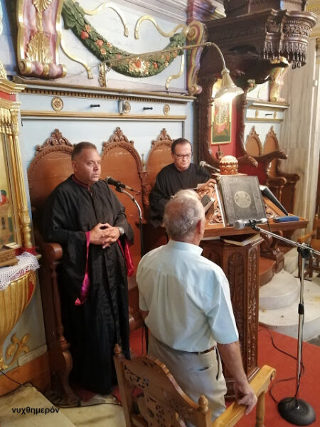 Τον Εφημέριο π. Παναγιώτη Καποδίστρια, ο οποίος κήρυξε κατάλληλα τον θείο λόγο, πλαισίωσαν ιεροψαλτικώς οι κ.κ. Δημήτριος Κάνδηλας, Χρυσοβαλάντης Δρογγίτης και Σπυρίδων Σαρατσένος.