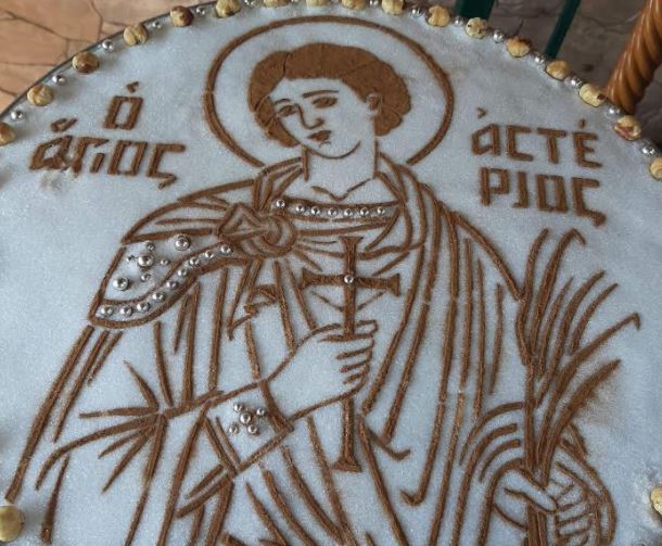 Μετά το πέρας της Θείας Ευχαριστίας ο π. Δημήτριος ευλόγησε το κόλλυβο του Αγίου Αστερίου και ευχήθηκε στον π. Αστέριο για την ονομαστική εορτή του.
