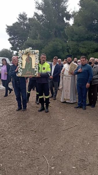 Μετά το πέρας της θείας ευχαριστίας ακολούθησε η λιτανεία της εικόνος την οποία πλαισίωσαν τα μέλη του Εθελοντικού Σώματος Δασοπυροσβεστών Δήμου Ερέτριας και τέλος η διανομή του φαγητού με την ευγενή χορηγία του Αντιδημάρχου κ. Ευάγγελου Τσώκου και του κ. Αλεξάνδρου Αλεξανδρή.