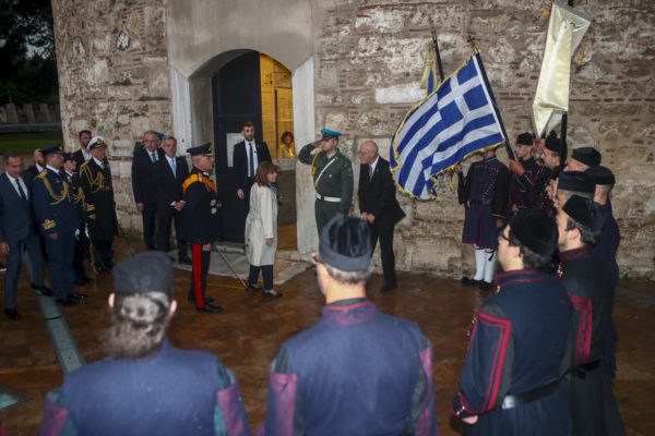 Με την έπαρση της σημαίας στον Λευκό Πύργο, που έγινε στις 8 το πρωί, παρουσία της Προέδρου της Δημοκρατίας Κατερίνας Σακελλαροπούλου, άρχισαν οι τριήμερες εορταστικές εκδηλώσεις για τον Πολιούχο Άγιο Δημήτριο, την επέτειο απελευθέρωσης της Θεσσαλονίκης και την εθνική εορτή της 28ης Οκτωβρίου.