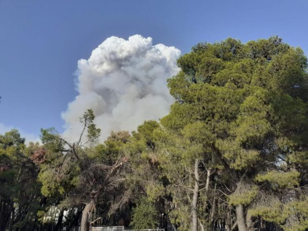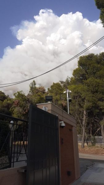 Η φωτιά πλησιάζει το κέντρο της περιοχής της Βαρυμπόμπης το απόγευμα της Πέμπτης 5 Αυγούστου. Οι κάτοικοι έχουν ήδη εγκαταλείψει τα σπίτια τους και οι καπνοί μαρτυρούν ότι σε λίγο η μανιασμένη φωτιά θα φτάσει χωρίς αντιστάσεις στις αυλές τους.
