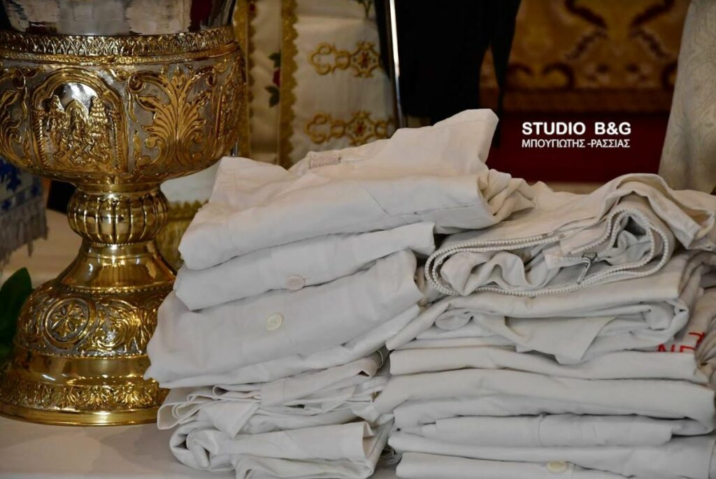 Κατόπιν, ο Σεβασμιώτατος τέλεσε αγιασμό και ευλόγησε τις ιατρικές μπλούζες ιατρών και νοσηλευτών, που ήταν τοποθετημένες ενώπιον των ιερών λειψάνων του Αγίου, από όπου αλιεύουμε την ως άνω ΦΩΤΟ της σημερινής ημέρας.
