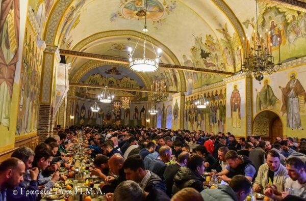Αργότερα, οι εκατοντάδες προσκυνητές οδηγήθαν με τάξη προς την Τράπεζα, από όπου και αλιεύουμε τη ΦΩΤΟ της ημέρας.