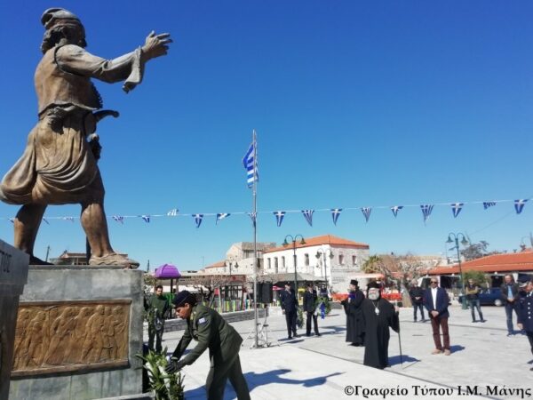 Την Τρίτη 17 Μαρτίου 2020, ο Σεβ. Μητροπολίτης Μάνης κ. Χρυσόστομος Γ’ μετέβη στην Αρεόπολη, απ’ όπου ξεκίνησε ο ένοπλος αγώνας κατά της Οθωμανικής αυτοκρατορίας το έτος 1821 και τέλεσε τρισάγιο στην Κεντρική Πλατεία «Αθανάτων», ενώπιον του αγάλματος του Μανιάτη Οπλαρχηγού Πετρόμπεη Μαυρομιχάλη, από όπου αλιεύουμε τη φωτογραφία της σημερινής ημέρας.