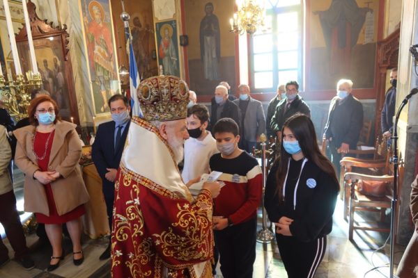 Στο πρόσωπο των μαθητών ευχήθηκε σε όλα τα παιδιά της Κέας “καλή πρόοδο” και ο Άγιος Χαραλάμπης να γεμίζει καρδιά τους με χαρά, ώστε να λάμπουν τα πρόσωπά τους από αισιοδοξία και, απευθυνόμενους στους παρισταμένους, υπογράμμισε ότι “αυτά τα παιδιά μας δίνουν παράδειγμα θέλησης, καθώς κατόρθωσαν, υπό αντίξοες και με πρωτόγνωρους τρόπους, να συνεχίσουν τη μαθησιακή τους πορεία, διδάσκοντάς μας ότι μπορούμε να βρίσκουμε τρόπους, ὠστε να υπερβαίνουμε με επιτυχία τις δυσκολίες”.