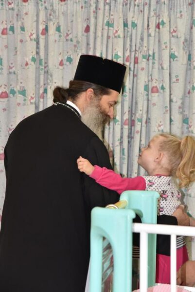 Ο Σεβασμιώτατος επισκέφθηκε όλους τους θαλάμους όλων των κλινικών του Νοσοκομείου και με πατρική αγάπη ευχήθηκε στους ασθενείς ταχεία ανάρρωση.