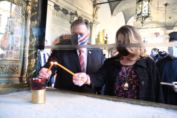 Επίσκεψη στην έδρα του Οικουμενικού Πατριαρχείου, στο Φανάρι, πραγματοποίησε σήμερα, Τρίτη, 17 Νοεμβρίου 2020, ο Υπουργός Εξωτερικών των Ηνωμένων Πολιτειών Αμερικής, Εξοχ. κ. Michael R. Pompeo, ο οποίος έγινε δεκτός με ιδιαίτερη τιμή, ενώ συνοδευόταν από την σύζυγό του Ευγεν. κυρία Susan Pompeo και τον Πρέσβη των ΗΠΑ στην Άγκυρα Εξοχ. κ. David Satterfield. Ο Υπουργός και οι συνοδοί του προσκύνησαν στον πάνσεπτο Πατριαρχικό Ναό.