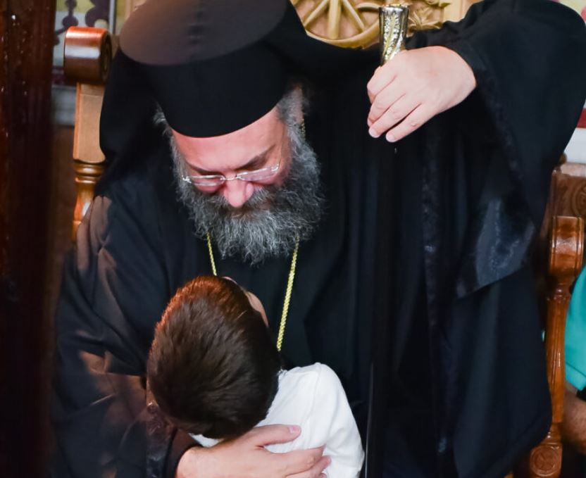 Στα φωτογραφικά στιγμιότυπα, ο Σεβ. Μητροπολίτης Τρίκκης και Σταγών ευλογεί ένα μικρό παιδί κατά τη διάρκεια της χθεσινής Ακολουθίας.