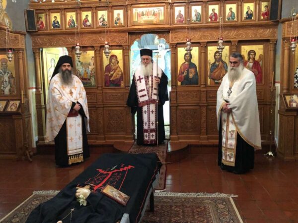 Η εξόδιος ακολουθία τελέσθηκε την Τρίτη 7 Απριλίου 2020 από τον Σεβασμιώτατο Ποιμενάρχη Θηβών και Λεβαδείας κ. Γεώργιο, κεκλεισμένων των θυρών, λόγω των μέτρων προστασίας από τον κορωνοϊό, μόνο με την παρουσία της αδελφότητας.