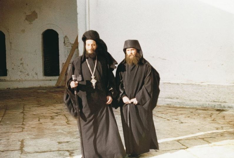ΦΩΤΟ: Σιμωνόπετρα – Ο Καθηγούμενος Γέρων Αιμιλιανός με τον τότε Καθηγούμενο της Ι. Μονής Φιλοθέου, αρχιμ. Εφραίμ (1973).