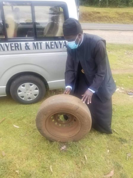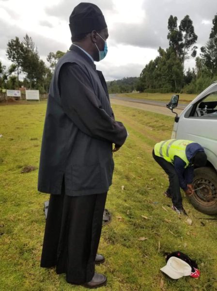 “Το πρωινό μας επεισόδιο στον δρόμο για την εκκλησία” αναφέρει ο Θεοφιλέστατος Επίσκοπος Νιέρι και Όρους Κένυας κ. Νεόφυτος. “Τα καταφέραμε” συμπληρώνει. Στα επίκαιρα φωτογραφικά στιγμιότυπα βοηθάει, συνεισφέροντας και ο ίδιος στην αντικατάσταση ενός σκασμένου λάστιχου.