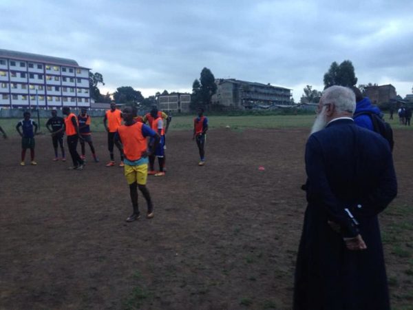 Ο Σεβ. Μητροπολίτης Γέρων Ναϊρόμπι, Yπέρτιμος και Έξαρχος Κένυας κ. Μακάριος, στο πλαίσιο των ποιμαντικών επισκέψεών του, επισκέφθηκε και ευλόγησε την προπόνηση μίας νεανικής ποδοσφαιρικής ομάδας, από όπου αλιεύουμε τη φωτογραφία της σημερινής ημέρας.