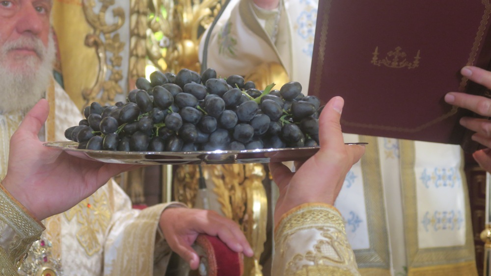 Πρό του πέρατος της Θείας Λειτουργίας, ο Σεβασμιώτατος κ. Θεόκλητος ευλόγησε τον νέο καρπό της αμπέλου.