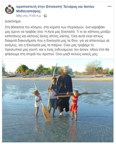 “Στη θάλασσα του κόσμου, στα κύματα των πειρασμών, ένα καραβάκι μας έμεινε να τραβάει ίσια. Η Αγία μας Εκκλησία”, γράφει ο Θεοφ. Επίσκοπος Τολιάρας και Νοτίου Μαδαγασκάρης, κ. Πρόδρομος, σε επίκαιρη διαδικτυακή ανάρτησή του