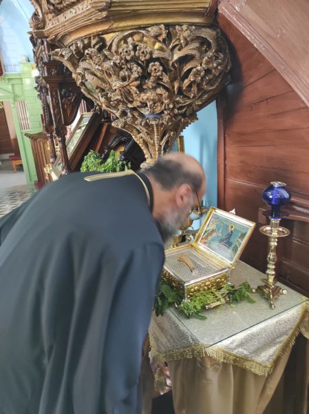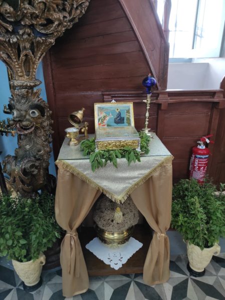 Ο Σεβ. Μητροπολίτης Σύμης, Τήλου, Χάλκης και Καστελορίζου κ. Χρυσόστομος τελεσε την Θεία Λειτουργία στον Ιερόν Ενοριακόν Ναόν Αγίου Γεωργίου άνω Χώρας Σύμης, επί τη αναμνήσει της μετακομιδής εν αυτώ του ιερού Λειψάνου του Οσίου Ιωσήφ του Γεροντογιάννη, από όπου αλιεύουμε τη φωτογραφία της σημερινής ημέρας.