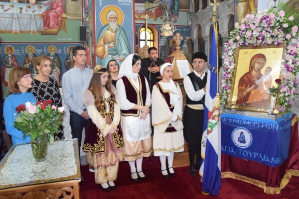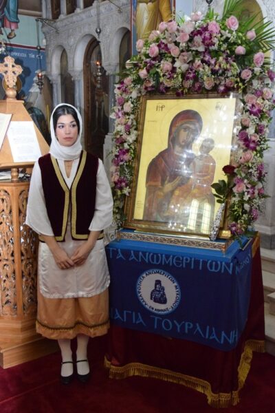 Μετά το πέρας της Θείας Λειτουργίας, έγινε λιτάνευση της Εικόνας της Παναγίας Τουρλιανής, την οποία πλαισίωσε η Φιλαρμονική του Δήμου Αθηναίων.