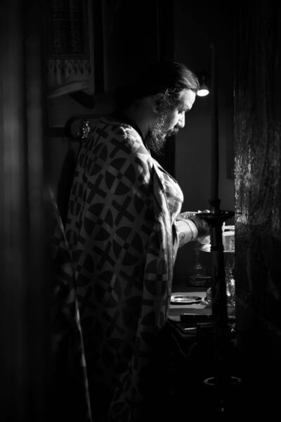 Το φωτογραφικό στιγμιότυπο αλιεύουμε απο την προετοιμασία της Αρχιερατικής Θείας Λειτουργίας στο Βατοπαιδινό Μετόχι του Αγίου Νικολάου του Νομού Ξάνθης, κατά το πρωινό της 24ης Σεπτεμβρίου, όπου εορτάστηκε και φέτος η μνήμη της Παναγίας της Παντάνασσας.