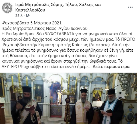 ΙΕΡΑ ΜΗΤΡΟΠΟΛΗ ΣΥΜΗΣ, ΤΗΛΟΥ, ΧΑΛΚΗΣ ΚΑΙ ΚΑΣΤΕΛΛΟΡΙΖΟΥ – 5 Μάρτιου 2021 – Ιερός Μητροπολιτικός Ναός Αγίου Ιωάννου.