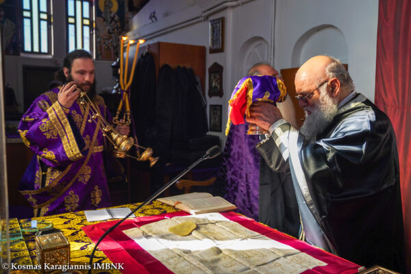 Την Πέμπτη 12 Μαρτίου το πρωί, ο Σεβασμιώτατος Μητροπολίτης Βεροίας, Ναούσης και Καμπανίας κ. Παντελεήμων τέλεσε Προηγιασμένη Θεία Λειτουργία και κήρυξε το θείο λόγο στον Ιερό Ναό Αγίου Νικολάου Ανατολικού, από όπου αλιεύουμε τη φωτογραφία της σημερινής ημέρας. Στα μάτια και τη μορφή του ιερέως που φέρει τα προηγιασμένα Τίμια Δώρα στο ως άνω φωτογραφικό στιγμιότυπο, διαγράφεται ο απόλυτος σεβασμός μετ’ ευλαβείας.