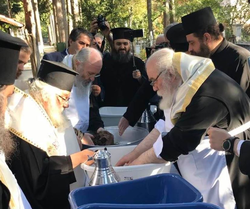 Μετά από ώρα, αποκαλύφθηκε το ιερό σκήνωμα και ξεκίνησε η τελετή του “πλυσίματος”.