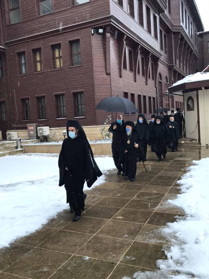Χιονισμένος ο Πάνσεπτος Πατριαρχικός Ναός του Αγίου Γεωργίου στο Φανάρι Κωνσταντινουπόλεως, από όπου αλιεύουμε τη φωτογραφία της σημερινής ημέρας. Ο Παναγιώτατος Οικουμενικός Πατριάρχης κ.κ. Βαρθολομαίος και η συνοδία του, χαίρουν, ευλογούν και περπατούν εν μέσω του στρωμένου χιονιού.