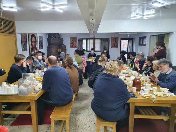 Μετά το πέρας της Θείας Λειτουργίας προσφέρθηκε γεύμα αγάπης σε όλους τους παρευρισκόμενους και στη συνέχεια ο Σεβασμιώτατος τους μίλησε πάνω σε ένα θέμα πνευματικής οικοδομής.