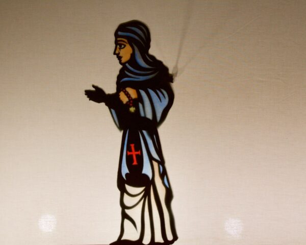 Αντλώντας έμπνευση από τον δραματικό βίο της περίφημης κυρά δασκάλας, μουσικοί και παίκτες σκιών εμψυχώνουν σκαλιστές χειροποίητες φιγούρες και ζωντανεύουν την περιπετειώδη ζωή της ασυμβίβαστης αρχοντοπούλας που φόρεσε τα ράσα. Στην παράσταση, η οποία πλαισιώνεται με μουσική υποβλητική και τραγούδι από τους Γεράσιμο Παπαδόπουλο, Θεολόγο Παπανικολάου και Κατερίνα Μιχαλάκη, έχουμε την ευκαιρία της επανασύνδεσης με την άγνωστη ιστορία της ΑΘήνας. Μέσα από το θαυμαστό συναξάρι της αγίας Φιλοθέης συνυφαίνεται παράξενα η ιστορία του λαϊκού θεάτρου σε ένα μαγικό και μυστηριακό ταξίδι προς το φως των σκιών, όπου καλούμαστε να αναζητήσουμε τη σημασία της ελευθερίας και της αξιοπρέπειας στη σημερινή ζωή.