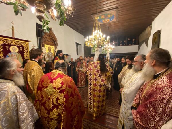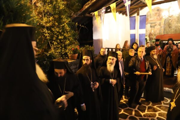 Στον Εσπερινό χοροστάτησε ο Μητροπολίτης Σισανίου και Σιατίστης Αθανάσιος και συγχοροστάτησαν οι Μητροπολίτες Φθιώτιδος Συμεών και ο επιχώριος Μητροπολίτης Καστορίας Σεραφείμ.