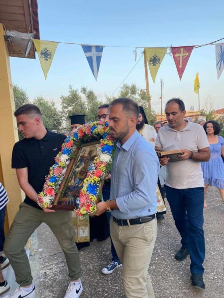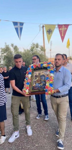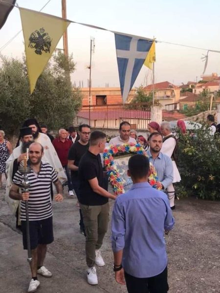 Ακολούθησε λιτάνευση της Ιεράς Εικόνας του Αγίου στους δρόμους του χωριού.