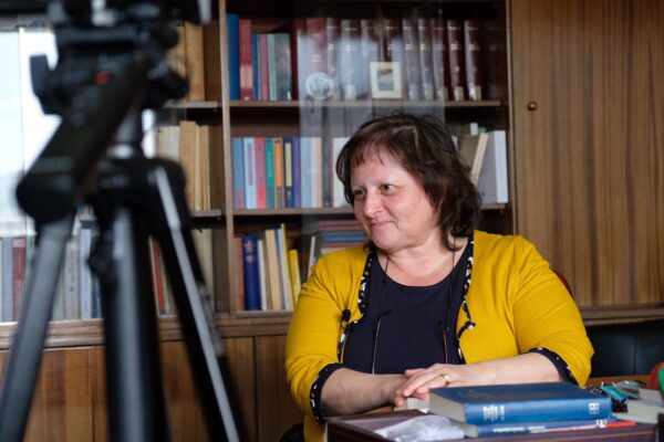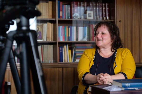 Η Κυριακούλα Παπαδημητρίου, Καθηγήτρια τμήματος Κοινωνικής και Ποιμαντικής Θεολογίας μιλώντας στη φακό της Πεμπτουσίας για το Πρόγραμμα επιμόρφωσης «Η Κοινή Ελληνιστική γλώσσα της Αγίας Γραφής και η Πολιτισμική της διάσταση. Β΄ Κύκλος: Η περίπτωση των δύο προς Θεσσαλονικείς επιστολών του Απ. Παύλου».